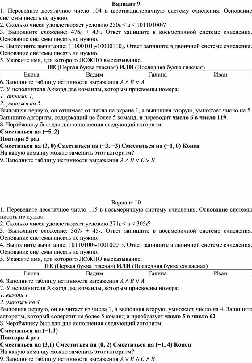 1. Переведите десятичное число 104 в троичную систему счисления. Основание системы писать не нужно.