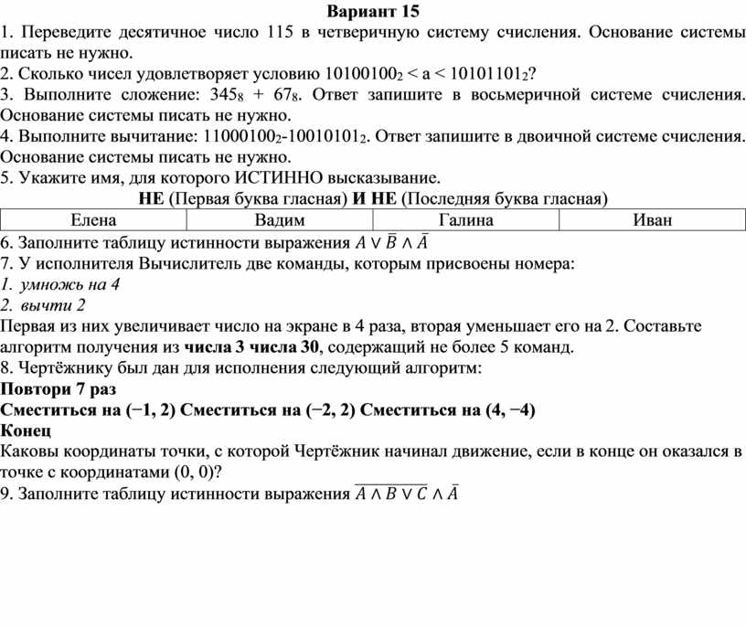 1. Переведите десятичное число 115 в четверичную систему счисления. Основание системы писать не нужно.