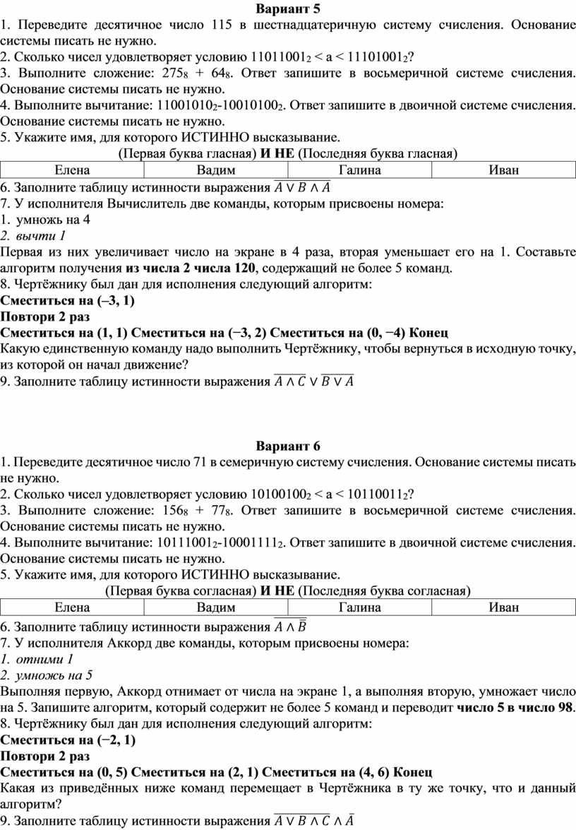 Первая из них уменьшает число на экране в 2 раза, вторая уменьшает его на 1. Исполнитель работает только с натуральными числами. Составьте алгоритм получения из числа 65 числа 4, содержащий не более 5 команд. В ответе запишите только номера команд.