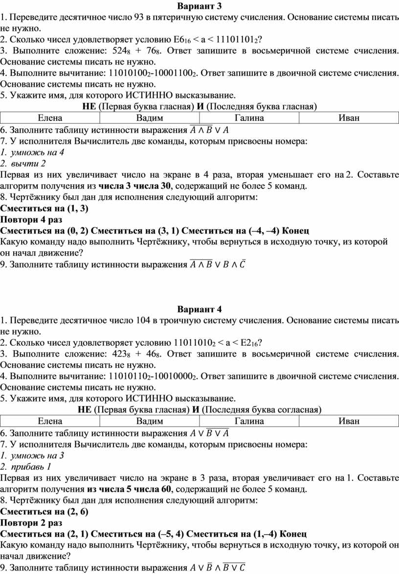 4. Выполните вычитание: 110001102-11111112. Ответ запишите в двоичной системе счисления. Основание системы писать не нужно.