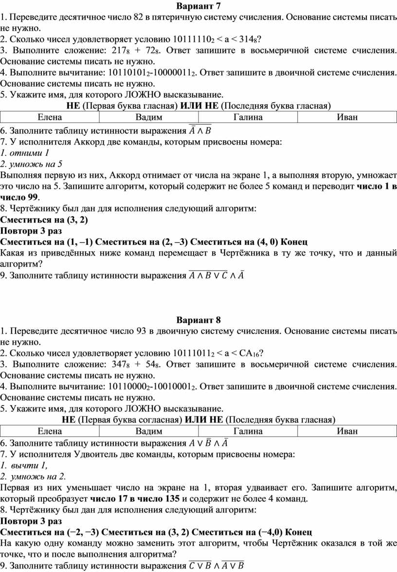 1. Переведите десятичное число 82 в девятеричную систему счисления. Основание системы писать не нужно.