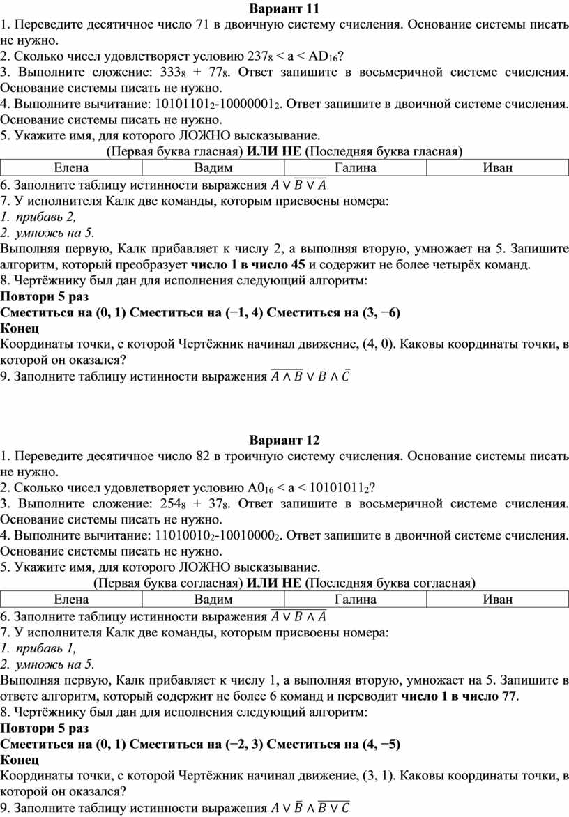 1. Переведите десятичное число 71 в двоичную систему счисления. Основание системы писать не нужно.
