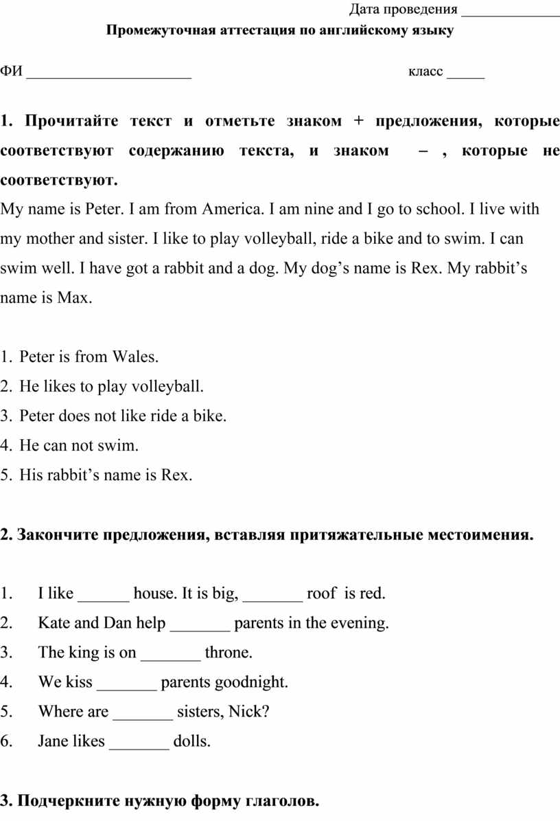 Промежуточная аттестация по английскому языку