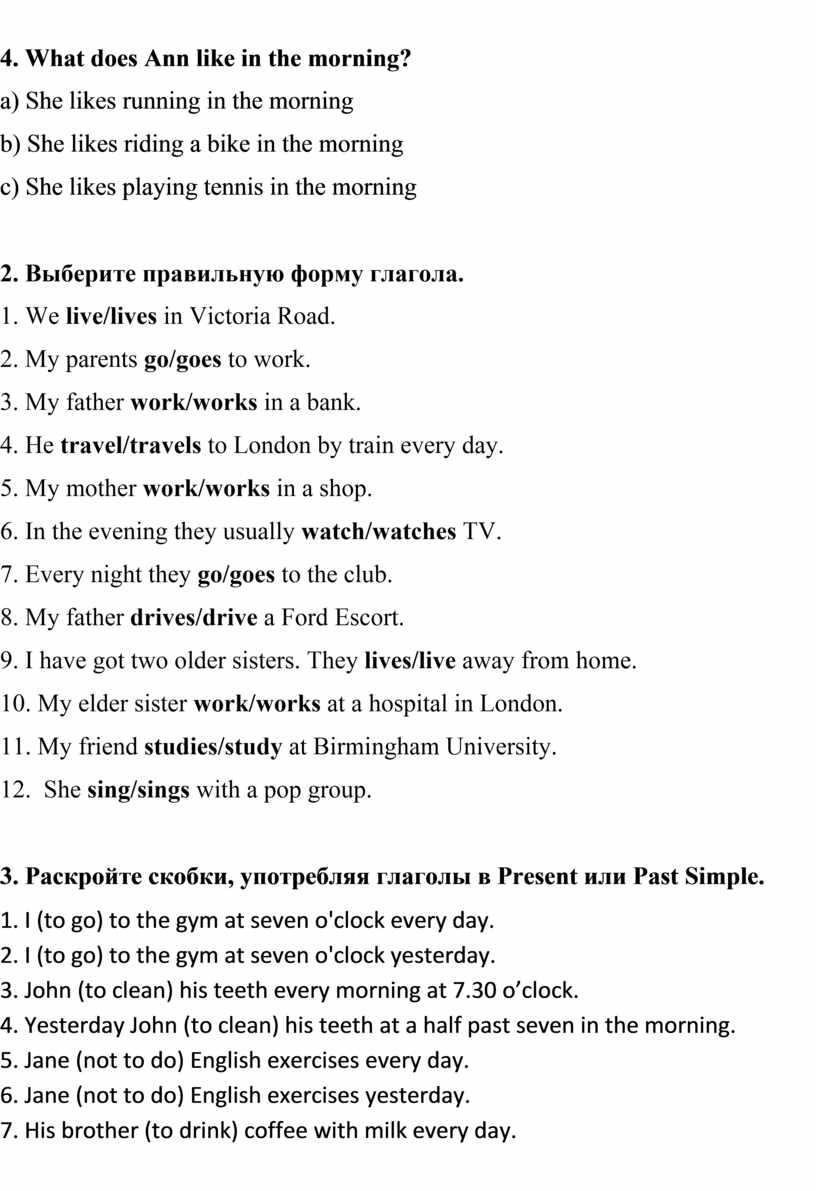 3. Раскройте скобки, употребляя глаголы в Present или Past Simple.