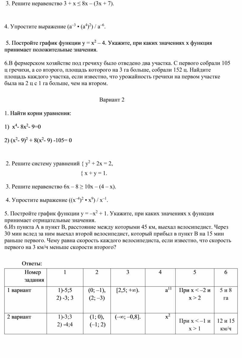 3. Решите неравенство 6х – 8 ≥ 10х – (4 – х).