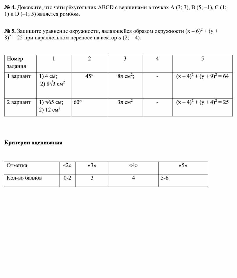 Критерии оценивания
