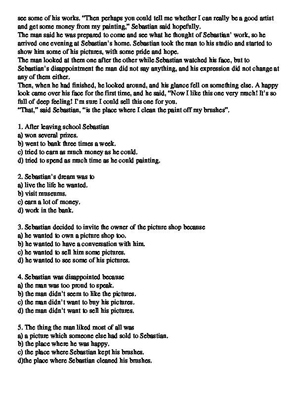 d)the place where Sebastian cleaned his brushes.Промежуточная аттестация по английскому языку