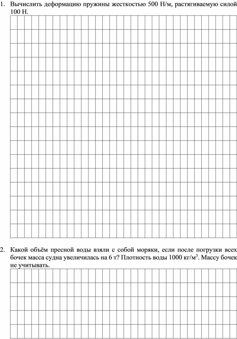 9. Какой объём пресной воды взяли с собой моряки, если после погрузки всех бочек масса судна увеличилась на 6 т? Плотность воды 1000 кг/м3. Массу бочек не учитывать.