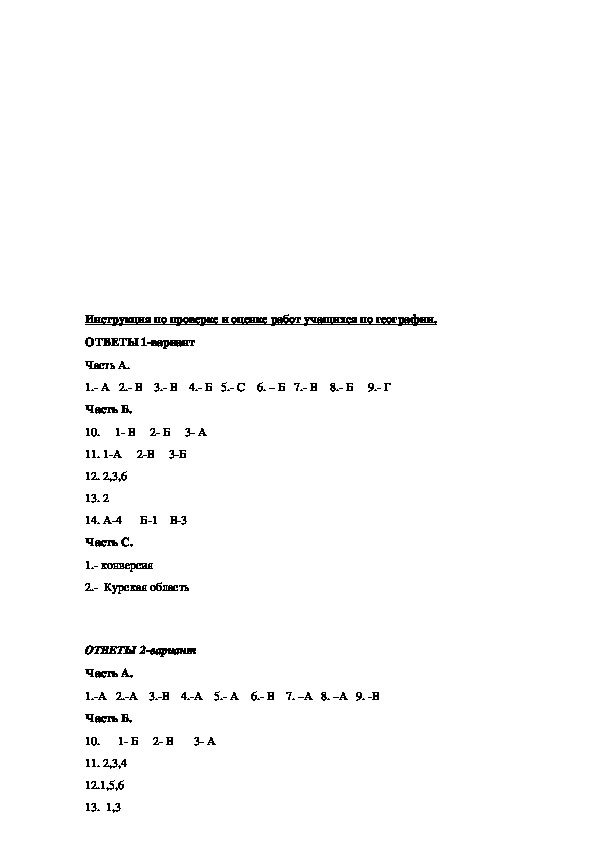 ___________________область.Инструкция по проверке и оценке работ учащихся по географии.