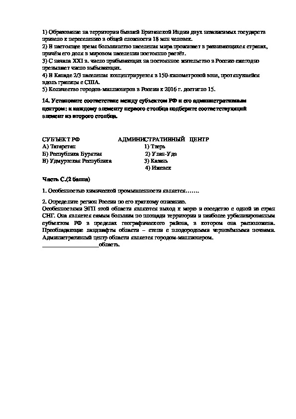 Б) Республика Карелия 2) УланУдэВ) Республика Калмыкия 3) Элиста