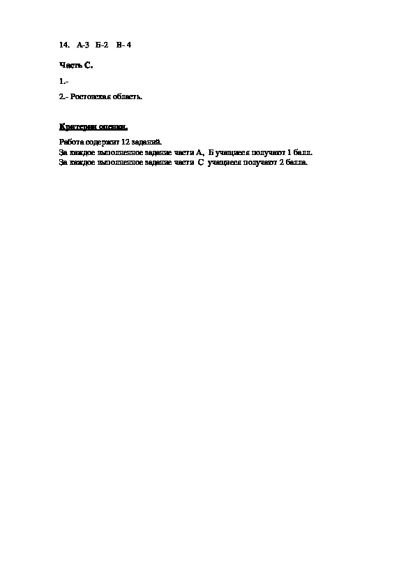 За каждое выполненное задание части А, Б учащиеся получают 1 балл.