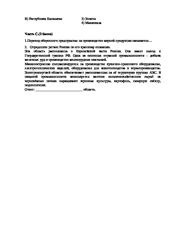 Ответ: ___________________________ область.Полугодовая контрольная работа 9 класса 2 вариант.