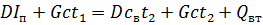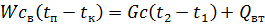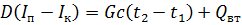 де G - витрата технологічного середовища, с - середня його питома теплоємність, t1, t2 - початкова й кінцева температури середовища, Iп, Iк - ентальпії пари і конденсату; Qвт - втрата тепла в навколишнє середовище.