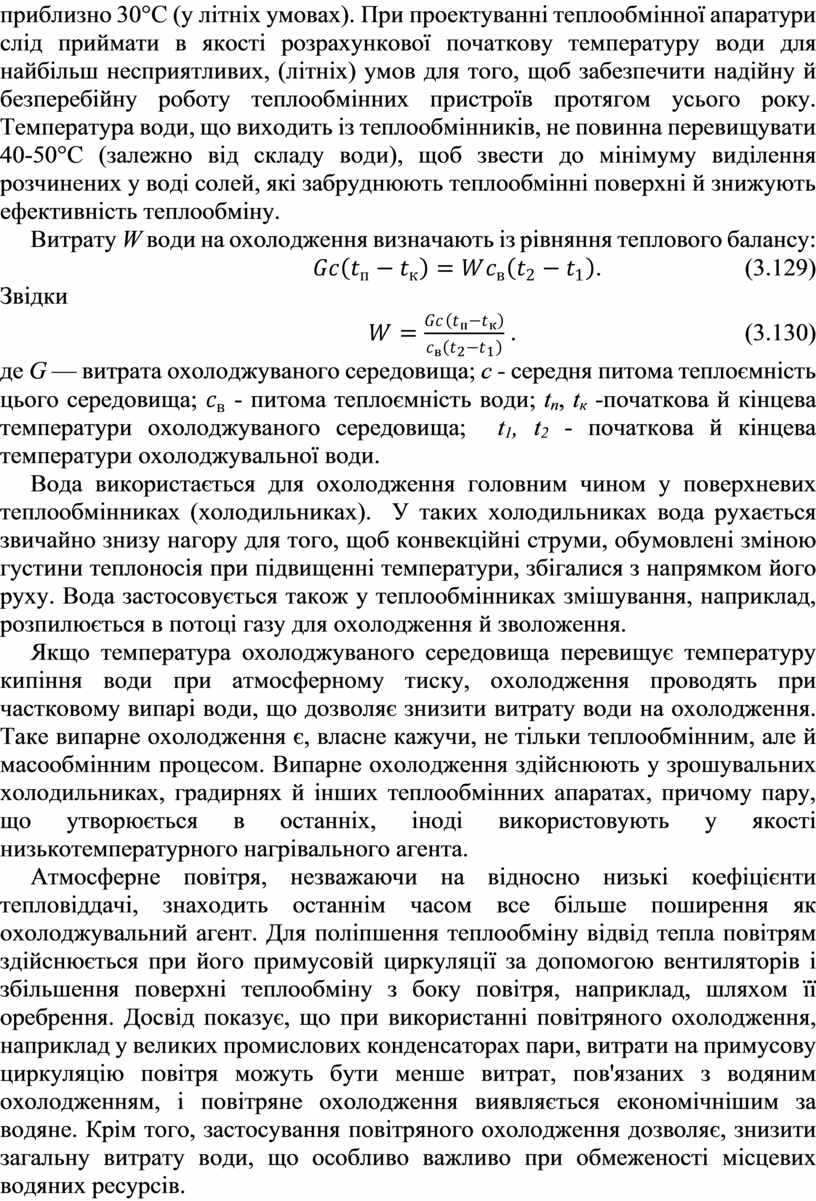 Витрату W води на охолодження визначають із рівняння теплового балансу: