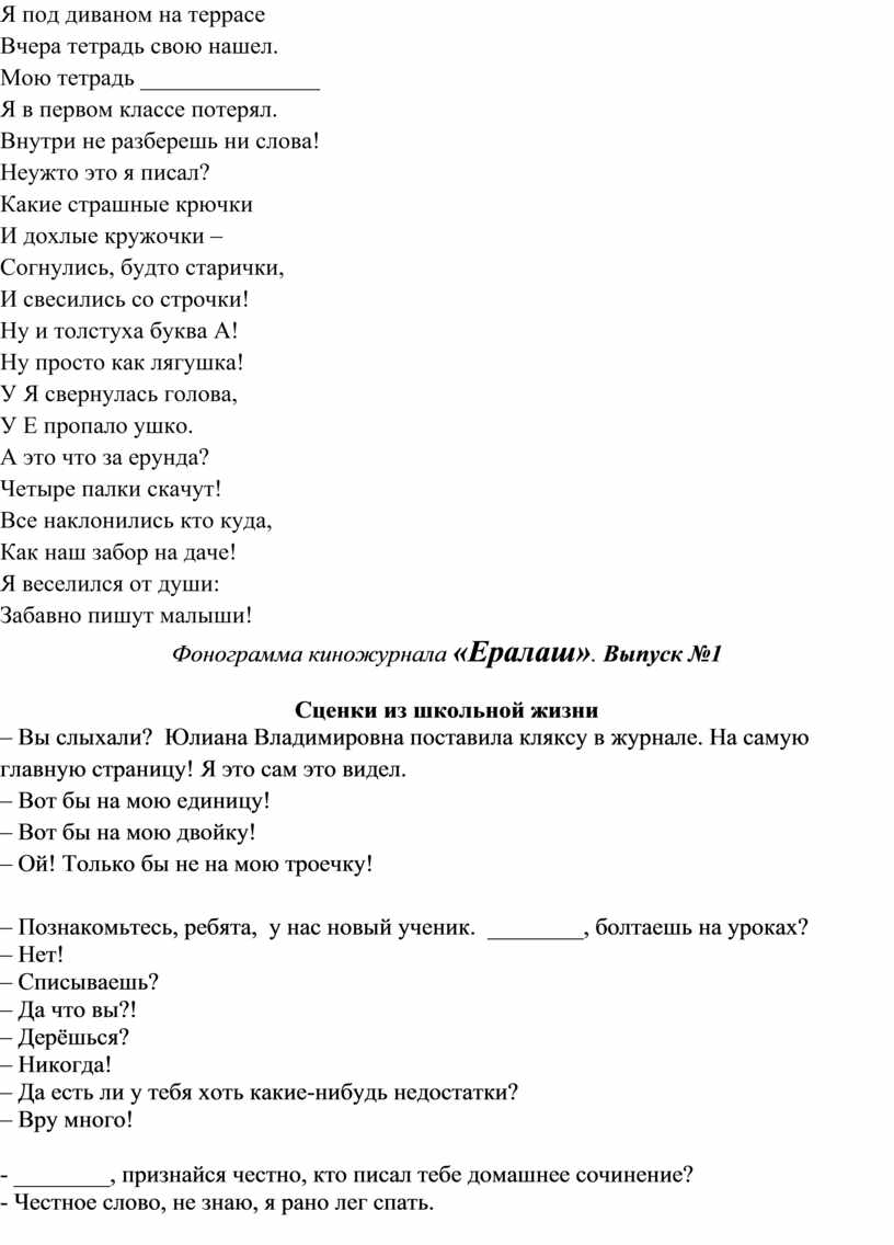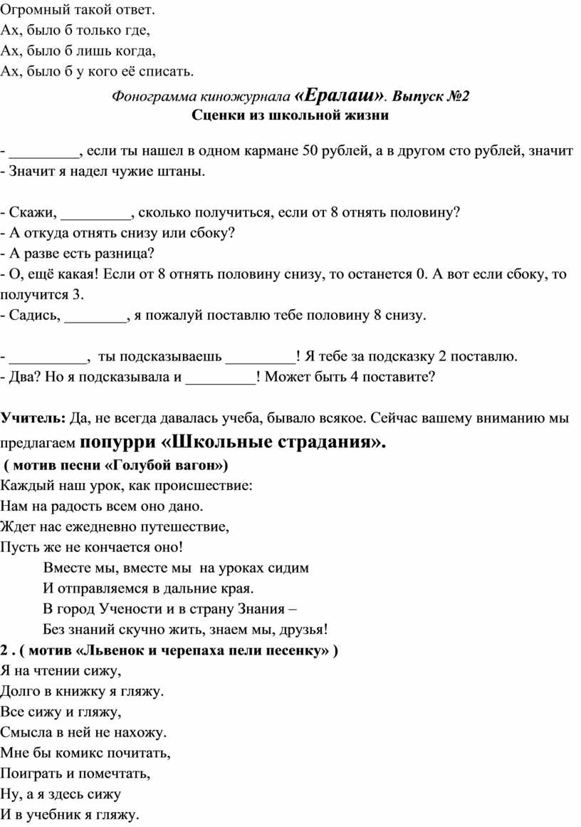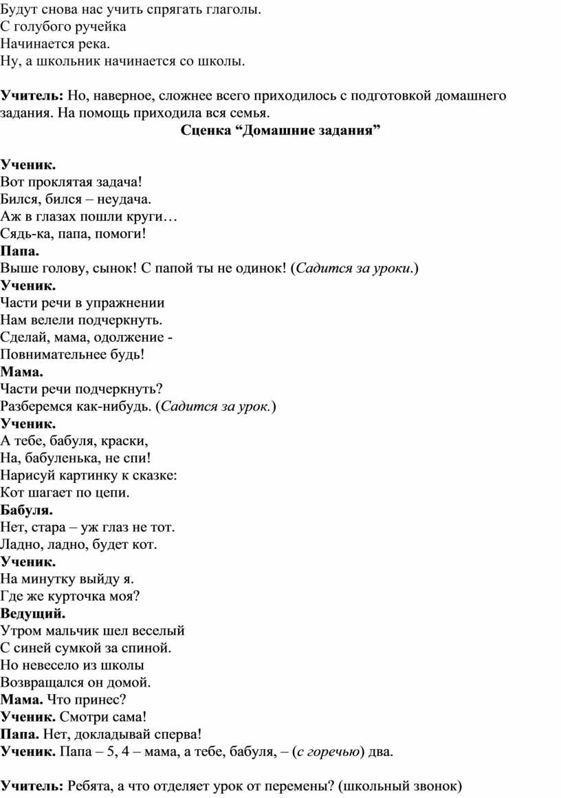 Учитель: Итак, четыре года тому назад, началась ваша школьная жизнь.