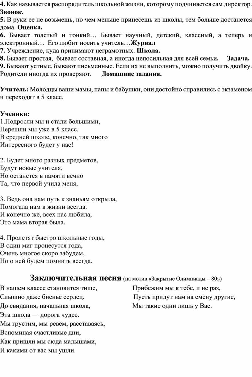 Сценарий выпускного вечера в 4 классе