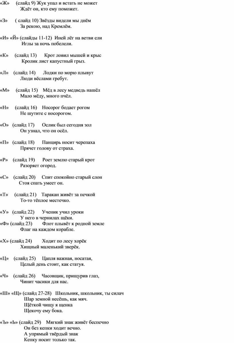 Встаёт «А» и читает стихотворение (и так все буквы по алфавиту )