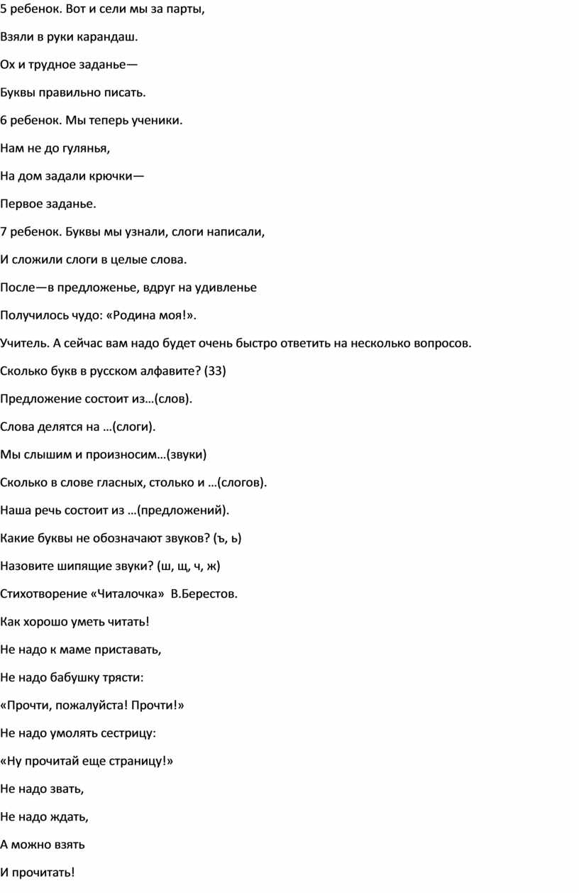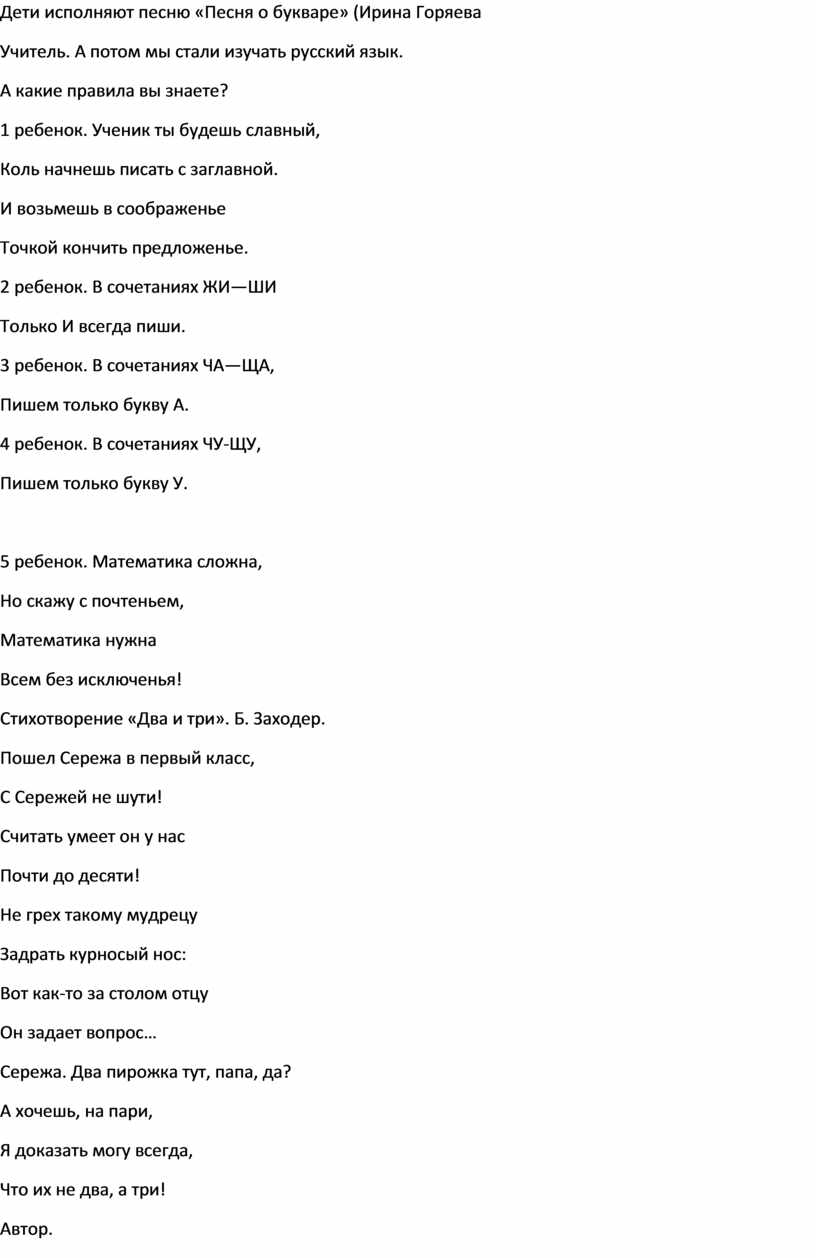 Дети исполняют песню «Песня о букваре» (Ирина Горяева