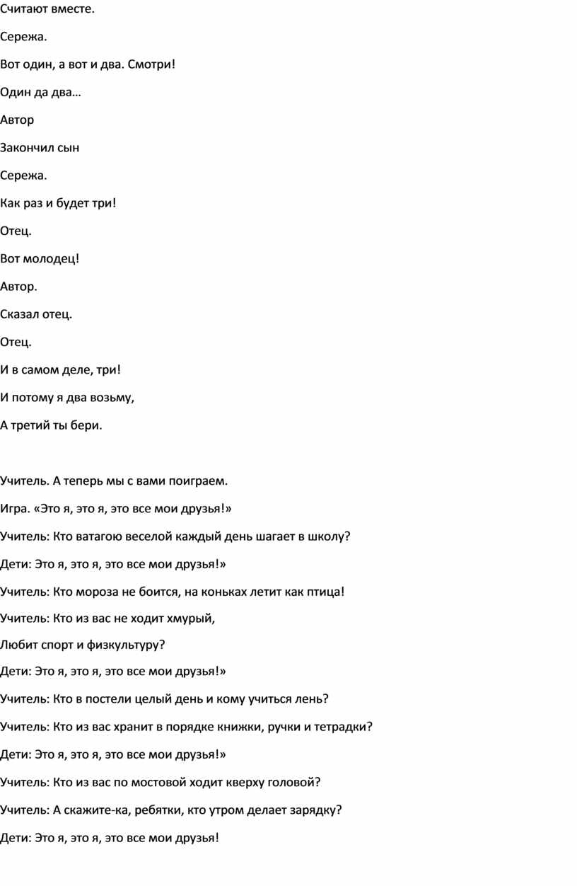 Учитель: Кто ватагою веселой каждый день шагает в школу?