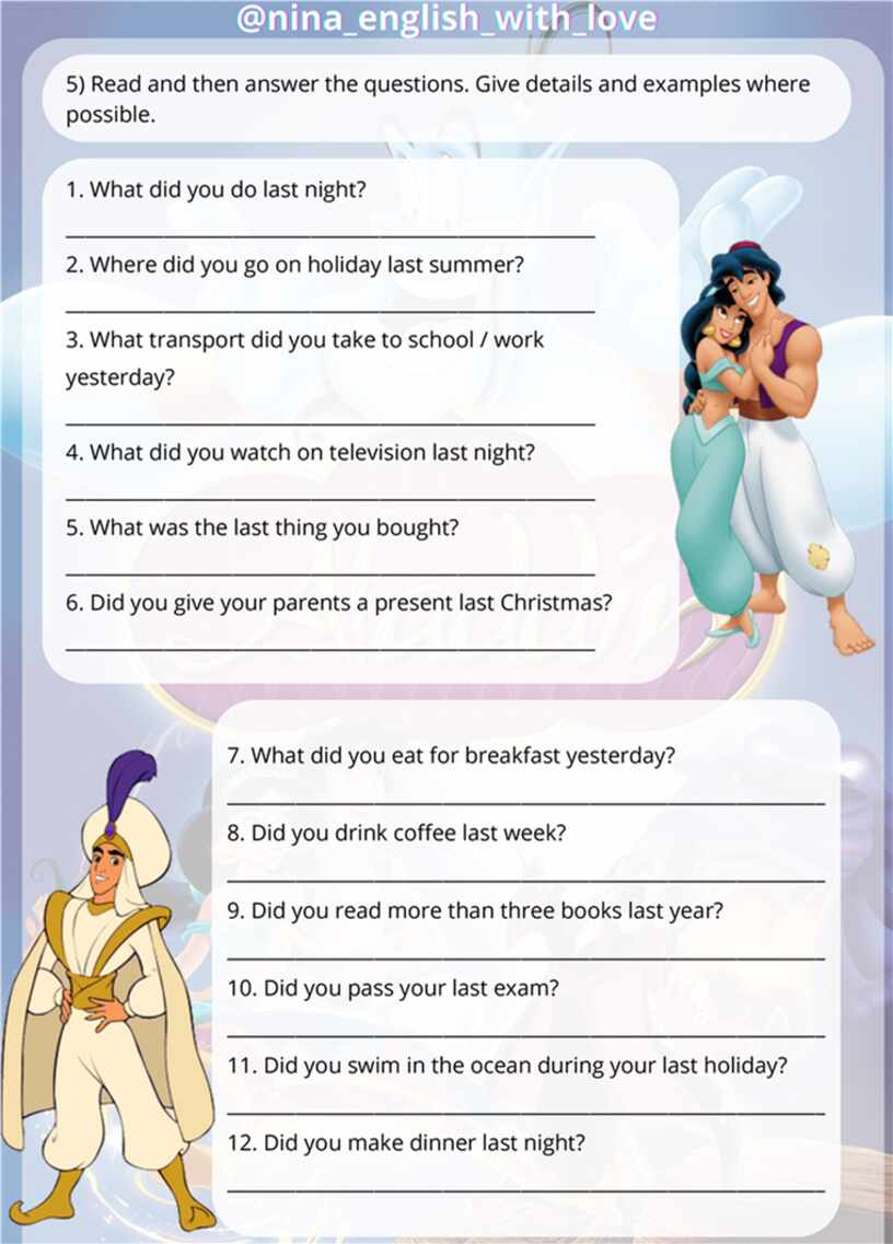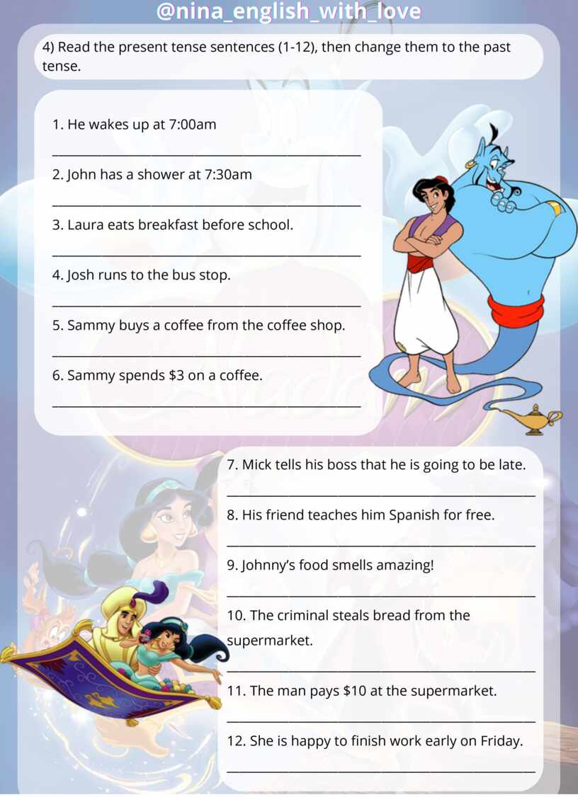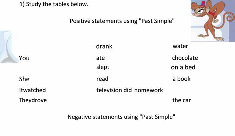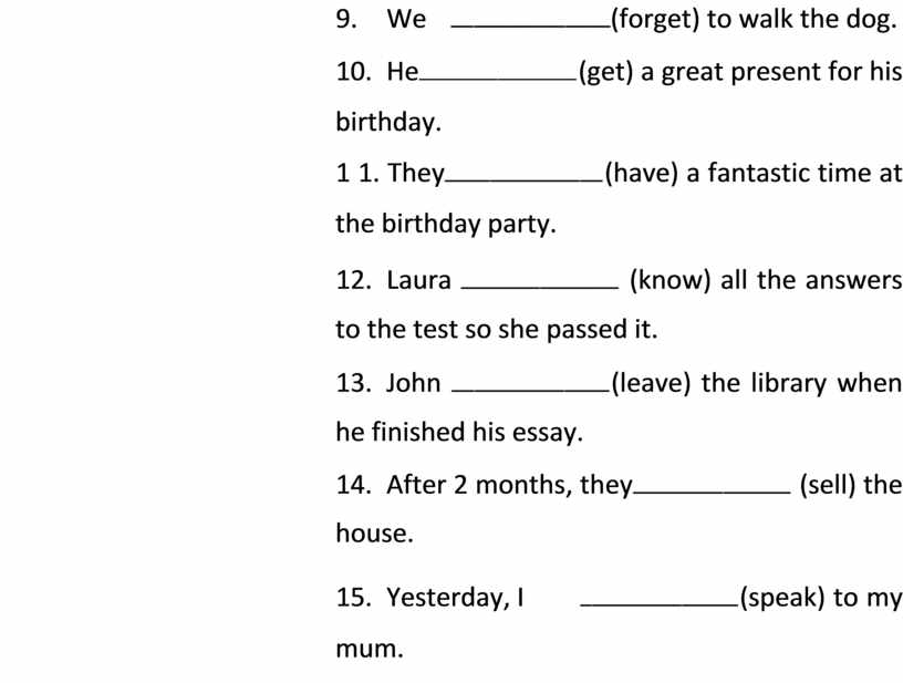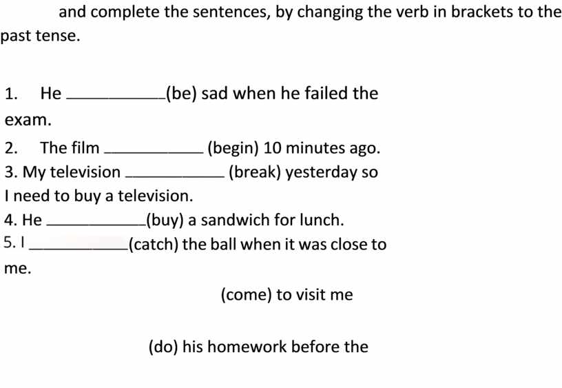 and complete the sentences, by changing the verb in brackets to the past tense.