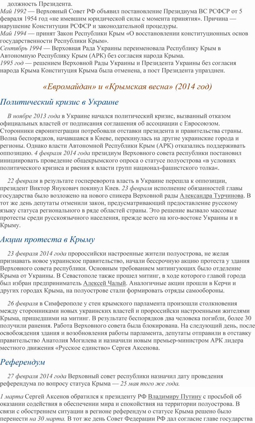 связи с распадом СССР в Крымской области был проведен референдум, по результатам