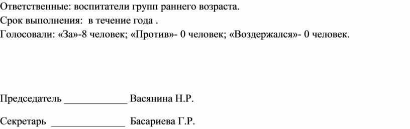 Ответственные: воспитатели групп раннего возраста. Срок выполнения: в течение года .
