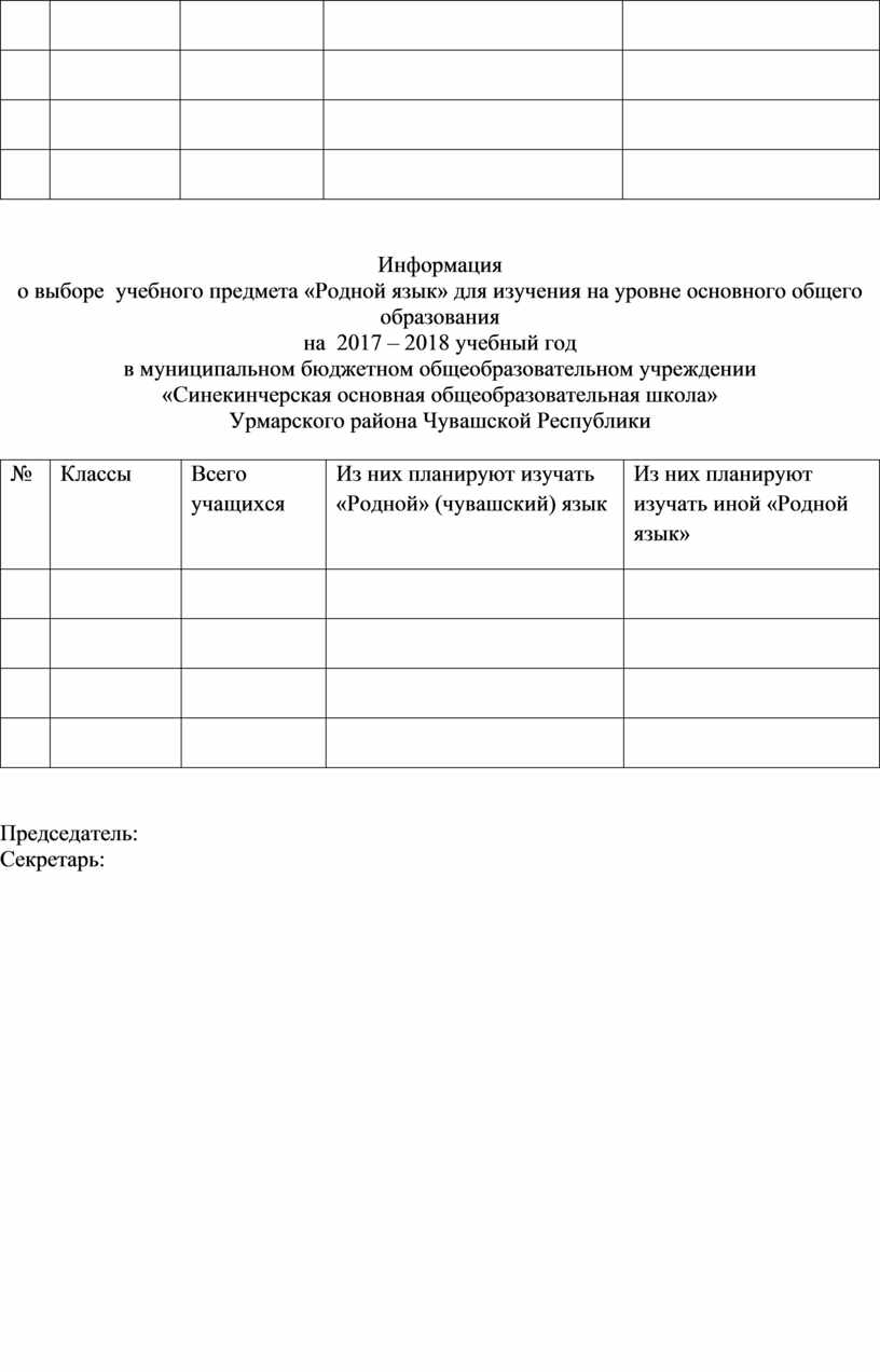 2. Выбран предмет «Родной (чувашский) язык» для изучения на ступени начального общего образования на 2017 – 2018 учебный год в муниципальном бюджетном общеобразовательном учреждении «Синекинчерская основная общеобразовательная школа» Урмарского района Чувашской