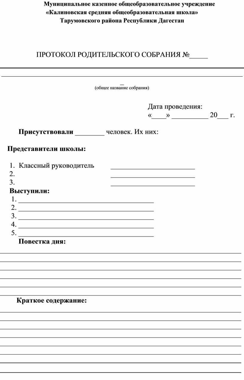 ПРОТОКОЛ РОДИТЕЛЬСКОГО СОБРАНИЯ №_____