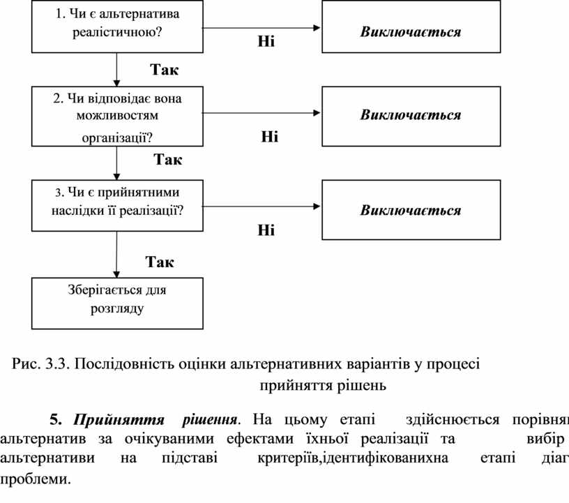 Рис. 3.3. Послідовність оцінки альтернативних варіантів у процесі прийняття рішень