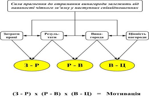 Теорія очікувань В. Врума ґрунтується на посиланні,що мотивація працівника досягається винагородженням.При цьому сила прагнення до