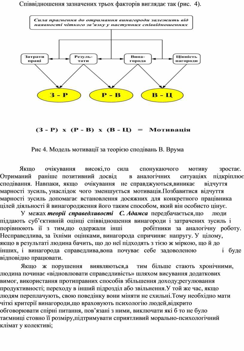 Рис 4. Модель мотивації за теорією сподівань В. Врума |
