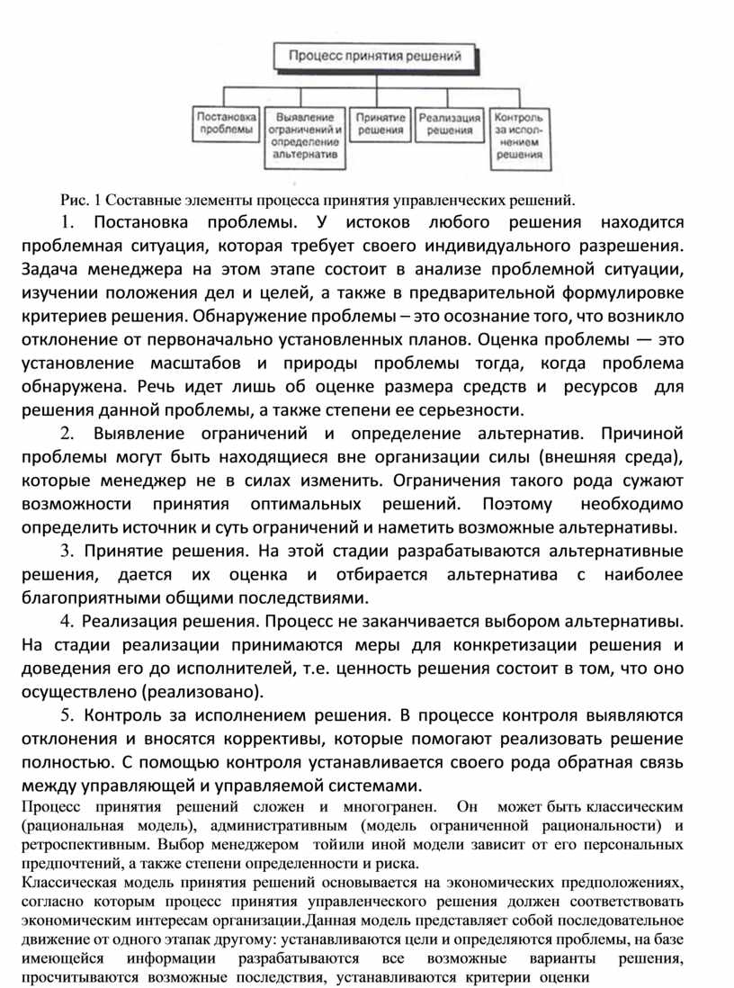 Рис. 1 Составные элементы процесса принятия управленческих решений.