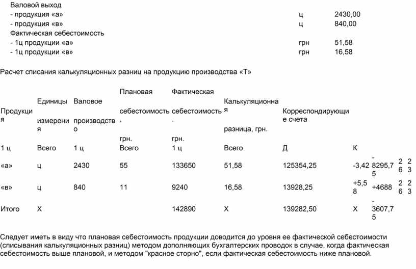 Следует иметь в виду что плановая себестоимость продукции доводится до уровня ее фактической себестоимости (списывания калькуляционных разниц) методом дополняющих бухгалтерских проводок в случае, когда фактическая себестоимость выше плановой, и методом "красное сторно", если фактическая себестоимость ниже плановой.