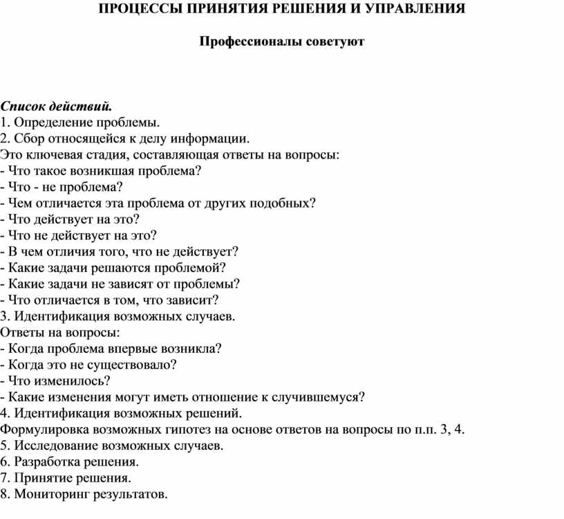 ПРОЦЕССЫ ПРИНЯТИЯ РЕШЕНИЯ И УПРАВЛЕНИЯ