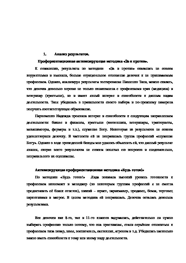 профессиям. Однако, анализируя результаты тестирования Павленко Тани, можно сказать,