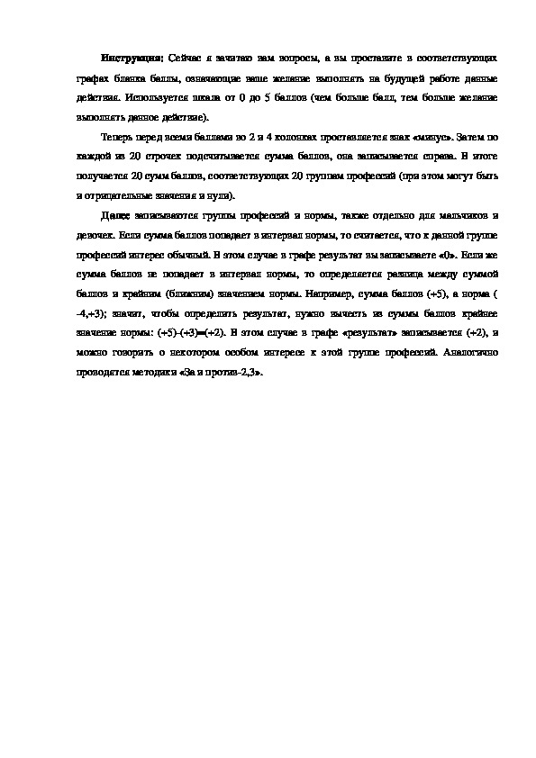 профессий интерес обычный. В этом случае в графе результат вы записываете «0». Если же