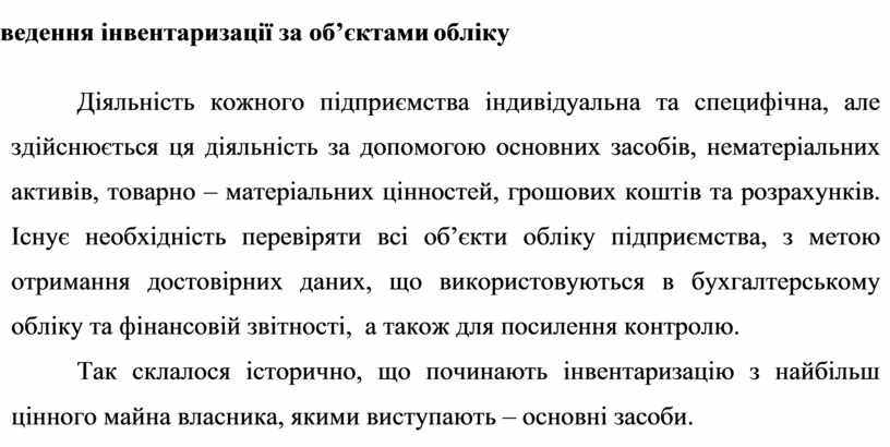 Так склалося історично, що починають інвентаризацію з найбільш цінного майна власника, якими виступають – основні засоби.