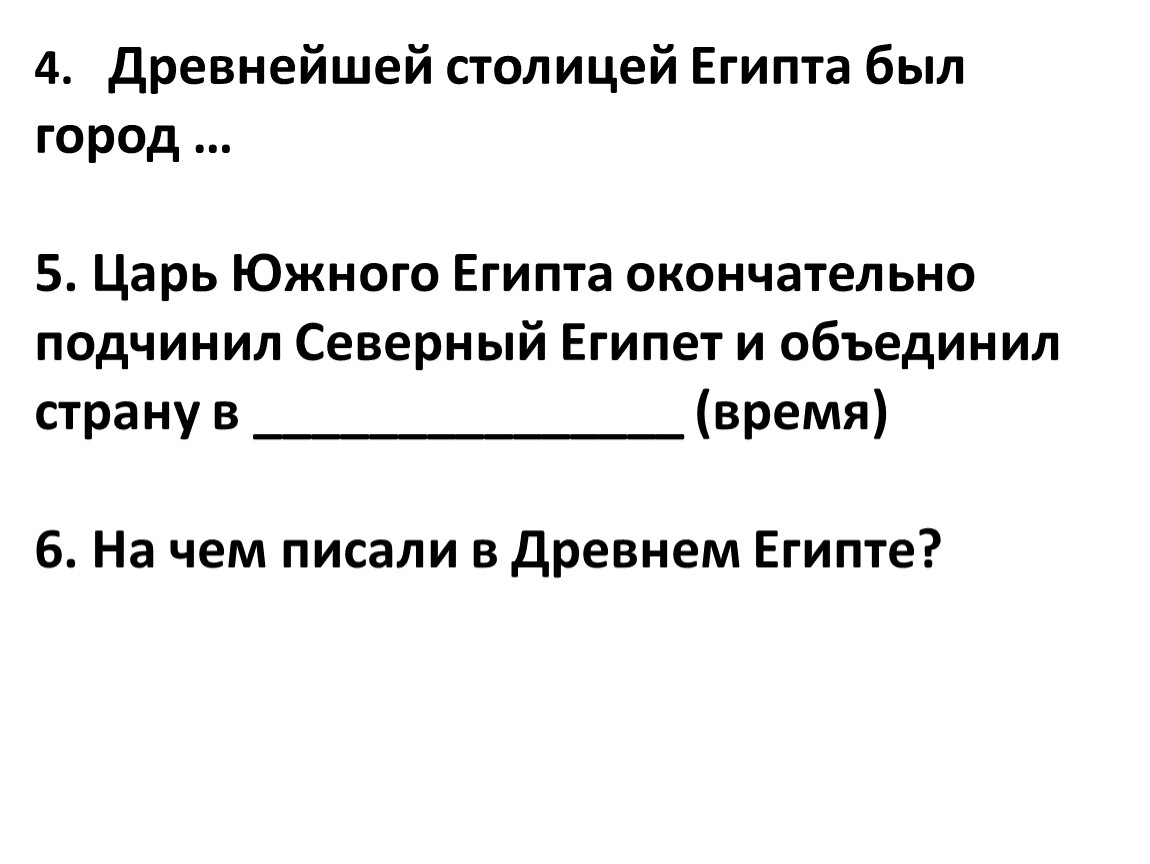 4. Древнейшей столицей Египта был город …
