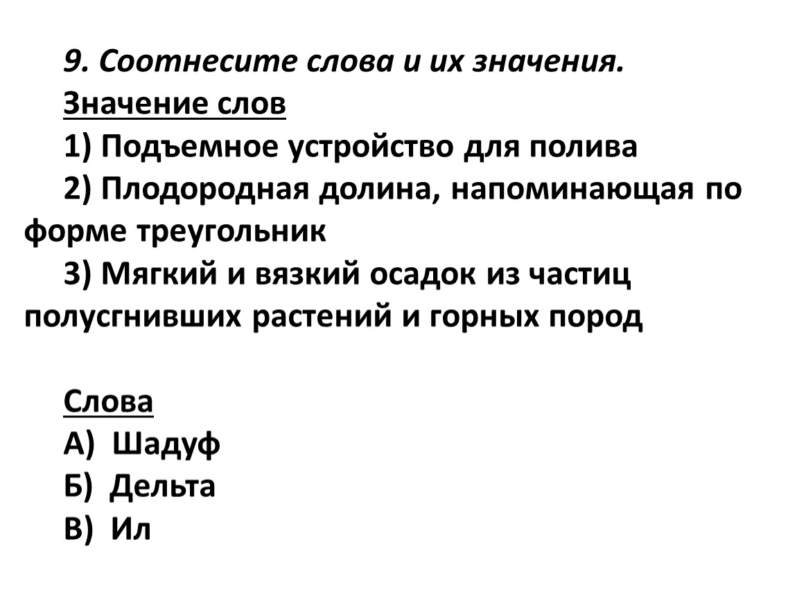 9. Соотнесите слова и их значения.