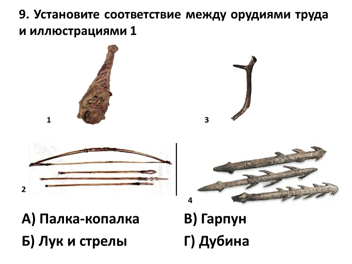 9. Установите соответствие между орудиями труда и иллюстрациями 1