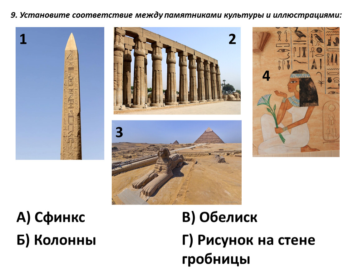 9. Установите соответствие между памятниками культуры и иллюстрациями: