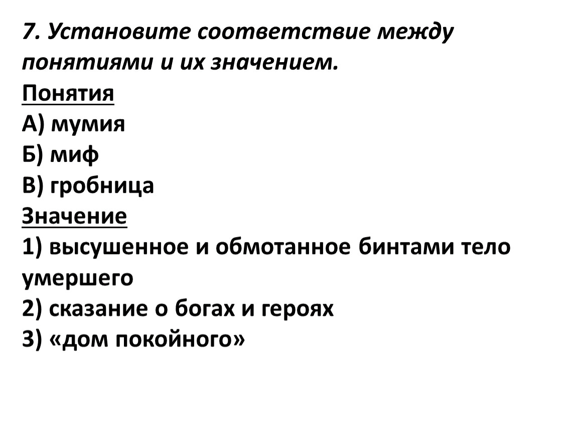 1) высушенное и обмотанное бинтами тело умершего2) сказание о богах и героях3) «дом покойного»