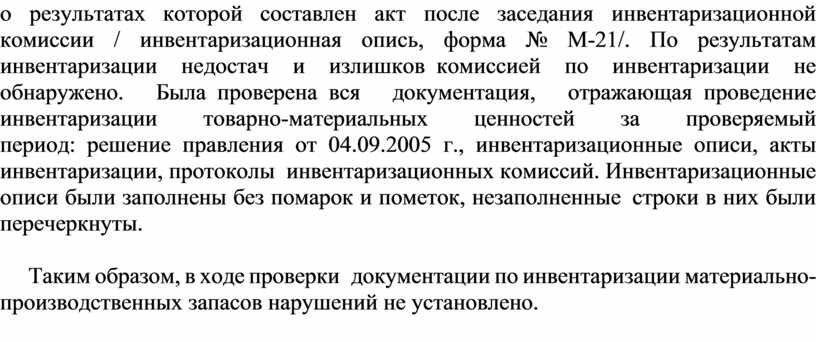 Таким образом, в ходе проверки документации по инвентаризации материально-производственных запасов нарушений не установлено.