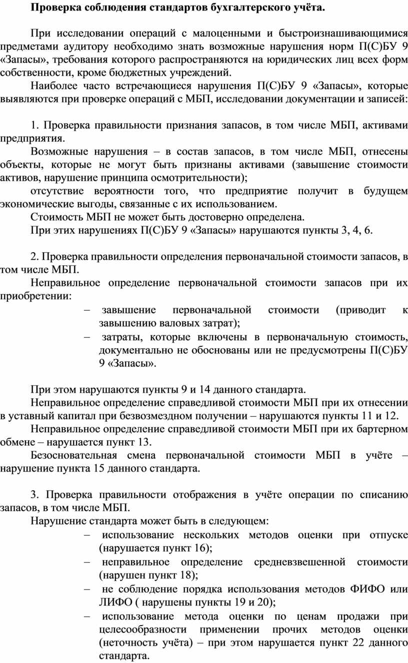 Наиболее часто встречающиеся нарушения П(С)БУ 9 «Запасы», которые выявляются при проверке операций с МБП, исследовании документации и записей: