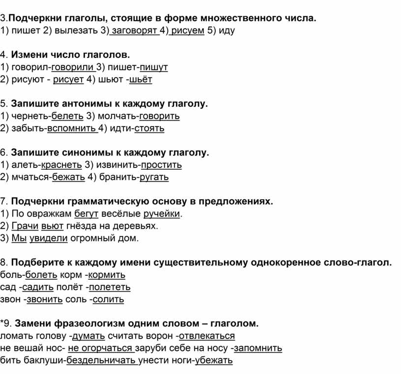 3.Подчеркни глаголы, стоящие в форме множественного числа.