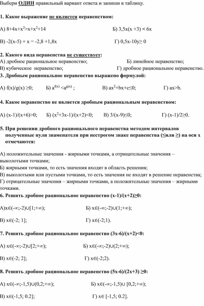 В) кубическое неравенство; Г) дробное рациональное неравенство.