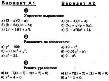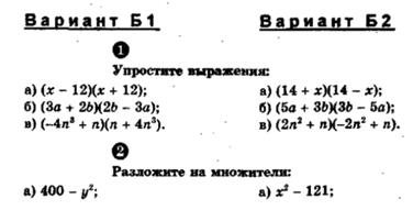 ПРОВЕРОЧНАЯ РАБОТА ПО АЛГЕБРЕ "РАЗНОСТЬ КВАДРАТОВ"