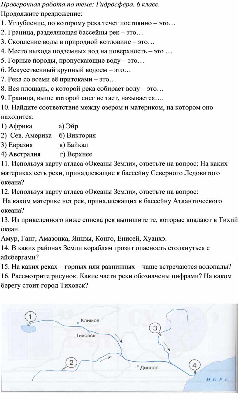 Проверочная работа по теме: Гидросфера. 6 класс.