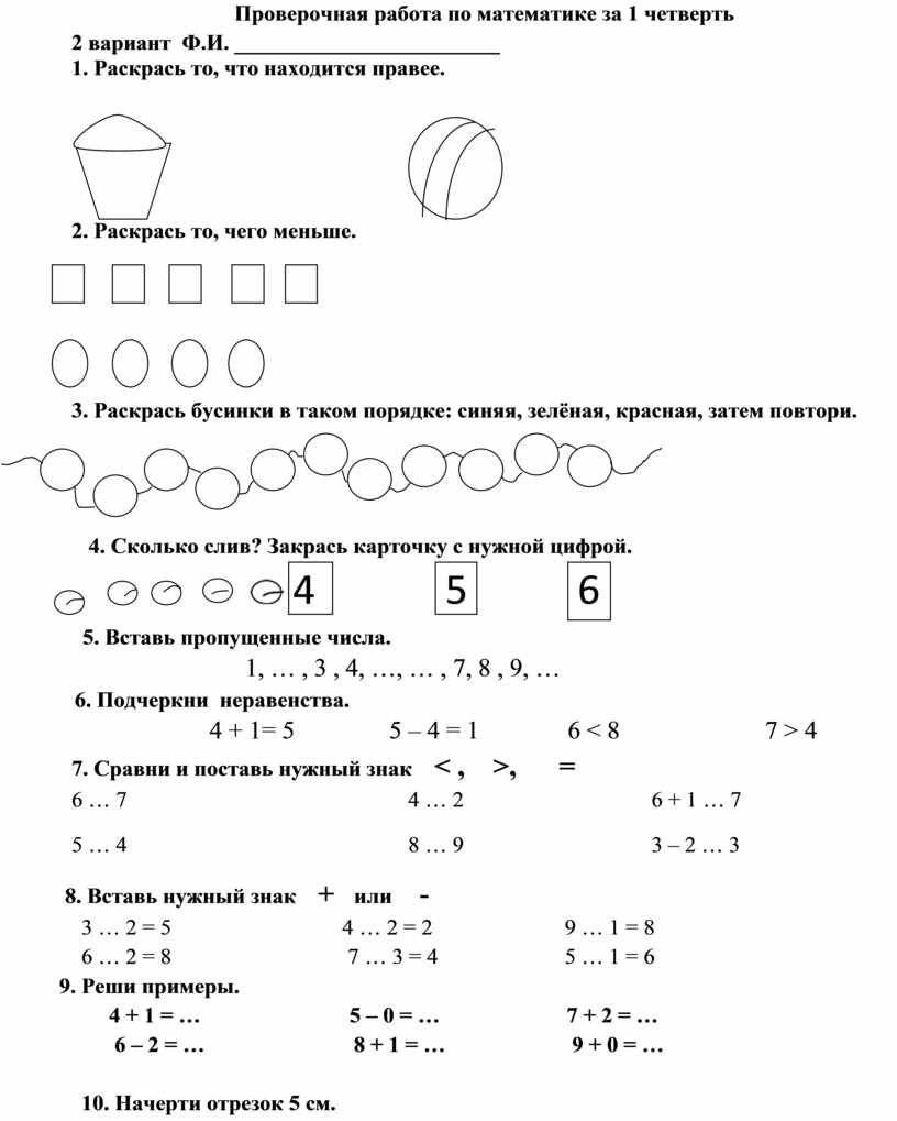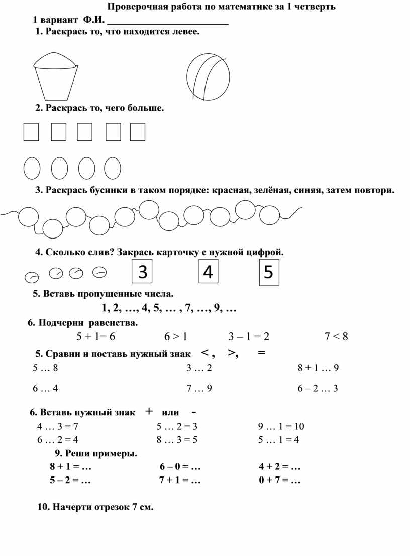 Проверочная работа по математике за 1 четверть