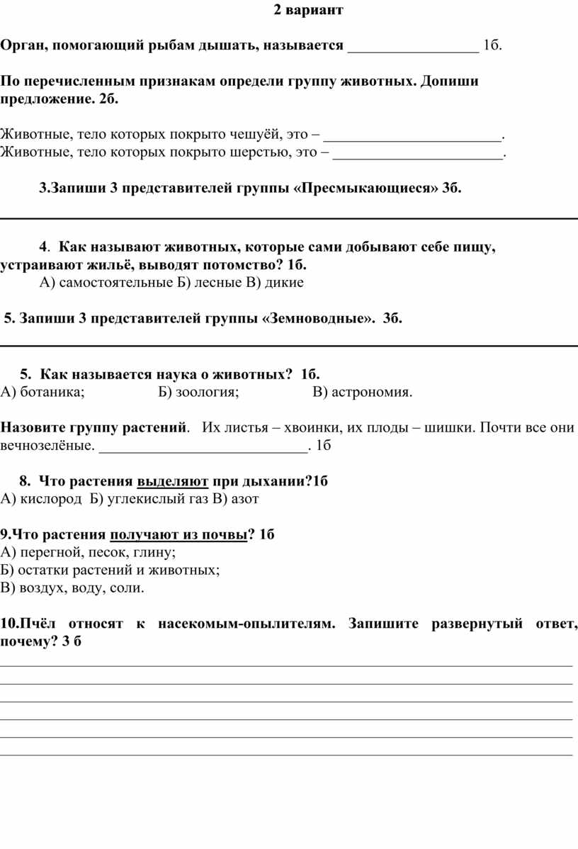 6. Как называется наука о животных? 1б.